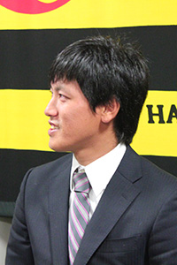18日(火)、小嶋達也選手が球団事務所での契約更改終了後に会見を行いました。