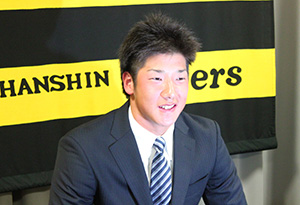 18日(火)、横田慎太郎選手が球団事務所での契約更改終了後に会見を行いました。