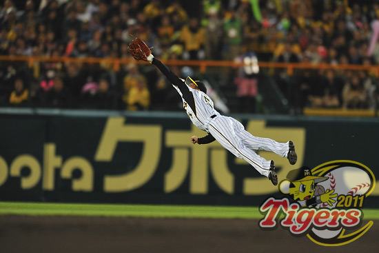 20日のルーキー・榎田の甲子園初登板時には、セカンド後方の当たりに向かって背走し、最後はジャンプしてキャッチ!シャチホコのような形で着地した。「守備は期待されている仕事の一つだからね」。事も無げに言ってのける。