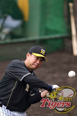 1999年の近鉄バッテリーコーチ以来、12年振りのユニフォーム姿。練習前の挨拶で背番号77を着けた新参謀は、「元気を出して行こう。優勝しよう!」とナインに第一声を放った。その言葉通り、初日から精力的に動く。メイン球場での全体練習を見届けるや、すぐにブルペンへ急行。キャッチャーの魂は健在だ。最初に注目したのは小嶋達也投手だった。まず、右打席に入って球質を確かめると、マウンドに向かって歩を進めて握手を求める。そして、耳元で何か囁くと、この後、若き左腕の投球が内角を鋭くえぐり始めた。「いや、挨拶だけです!」と小嶋は煙に巻いたが、そうだとすれば何か魔法にでもかけられたのか?としか思えない。やはりサウス・ポーの藤原正典投手にも声をかけ、「課題としてる球に(1回目で)気づいてもらって・・・」とたちまち心をワシ掴みにしている。
