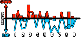 1試合を通じてどのシーンが盛り上がったかを視覚的に伝えます。