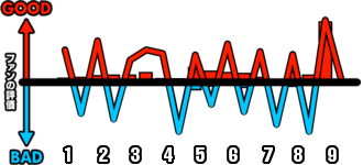 1試合を通じてどのシーンが盛り上がったかを視覚的に伝えます。
