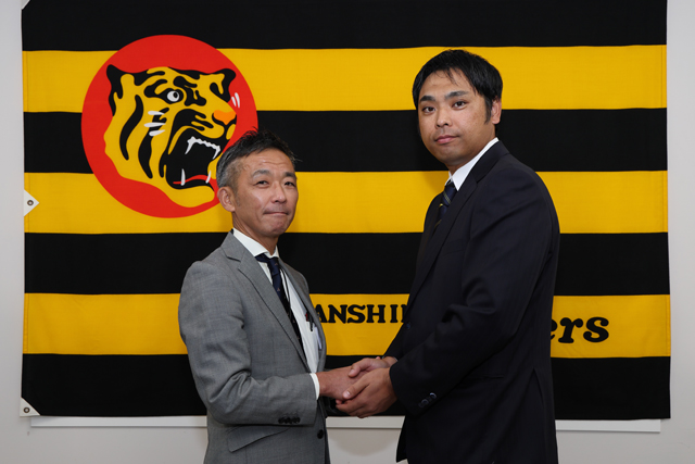 4日(火)、来季の投手コーチに桑原謙太朗氏の就任が決定し、西宮市内にて会見を行いました。背番号は「81」です。