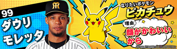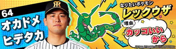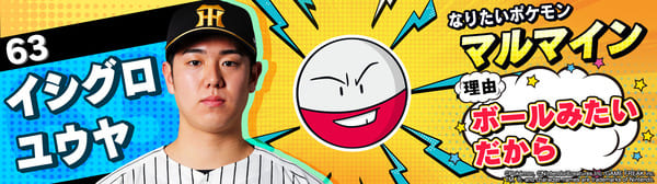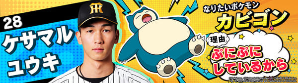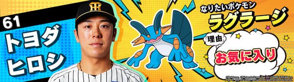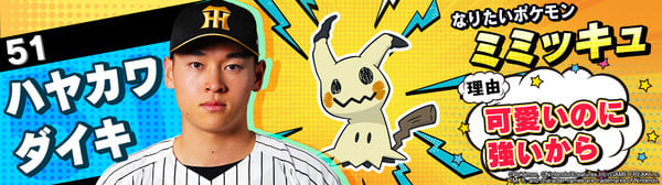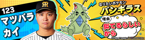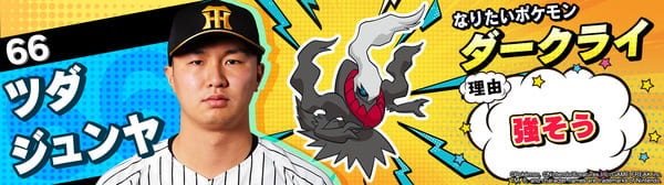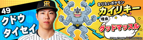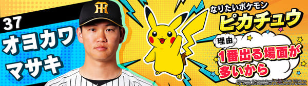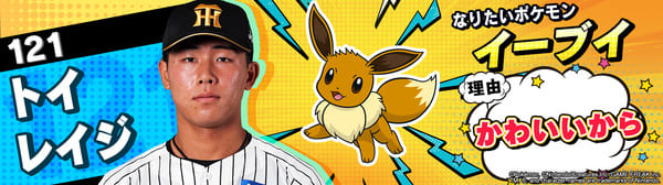 4月17日(金)~19日(日)、阪神甲子園球場での対中日ドラゴンズ戦において「ポケモンベースボールフェスタ2026 ~30年の想いをボールに込めて~」を開催。イベントに合わせて、タイガース全選手になりたいポケモンを聞いてみました!是非、推し選手のなりたいポケモンを探してみてください!!なお、イベント開催期間中は球場ビジョンでも紹介いたします。