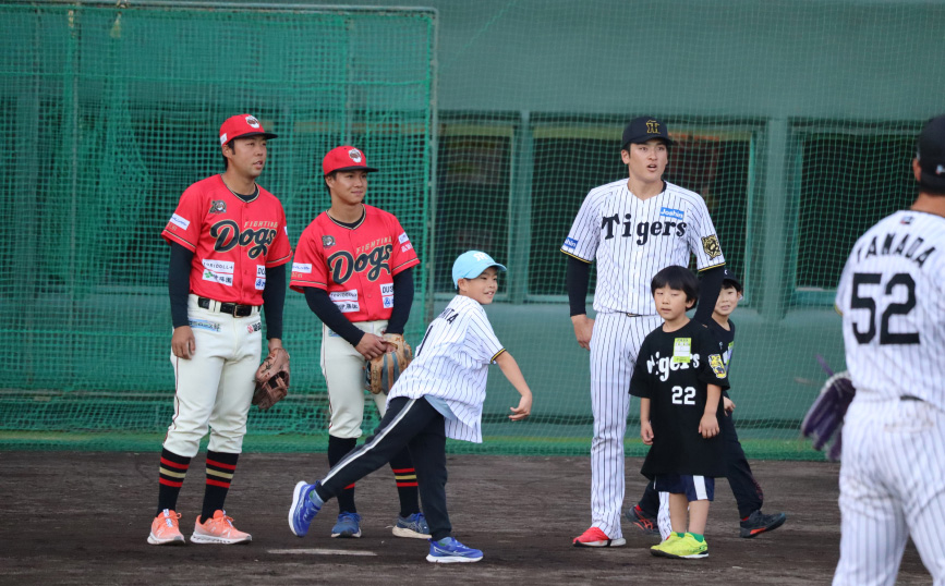 プロ野球選手と交流しながら、
